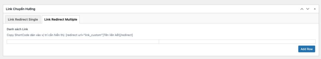 Một lưu ý quan trọng là các shortcode sẽ hoạt động theo số thứ tự từ trên xuống, ví dụ shortcode link Fake đầu tiên tương ứng với Add Row link chuyển hướng đích đầu tiên, và tất nhiên cái shortcode thứ hai sẽ tương ứng với Add Row thứ hai.